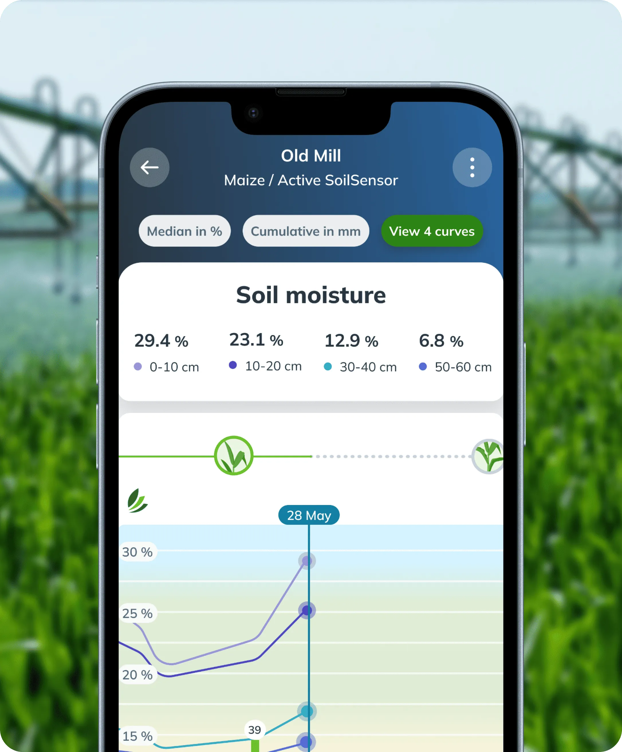 • The wind meter measures wind speed and direction (including gusts) to plan phytosanitary treatments or sowing more efficiently.